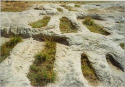 Con gran cantidad de tumbas antropomorfas excavadas y donde también, como en caso de Corvio, se vislumbran los restos de la antigua planta de la ermita rupestre que los amparó.