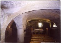 Pueden verse algunas tumbas antropomorfas excavadas; lo que nos hace suponer, que en la actual fábrica de la iglesia románica se ubica sobre lo que fue el antiguo solar de una ermita rupestre ya desaparecida.