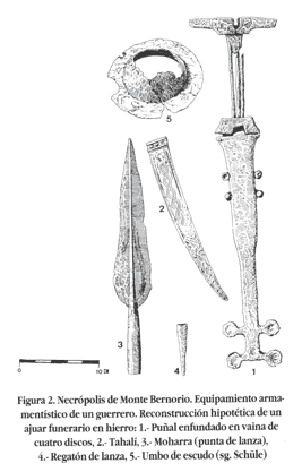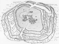 En una excavación que se hizo bajo esta muralla, se encontró la base de una cabaña circular del siglo IV ane, sobre la cual se había construído la muralla. Entre los restos encontrados dentro de la cabaña, se halló una reja de arado, en hierro, lo cual demuestra que ya existían cultivos de cereal, aparte del típico cultivo de huerta.